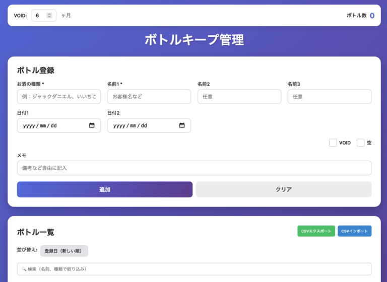 そもそも開発のとっかかりというか動機は神戸のバー、gaLa ecstaticのボトル管理がうまくいかないというところからだった。