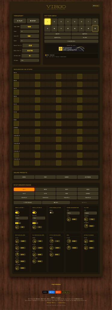 想定する使い方としてはここでパターンを作って音声書き出し、DAWやサンプラーで用いるというのを想定しています。WEBツールという性格上リアルタイム演奏にどこまで耐えられるかはちょっと疑問です。